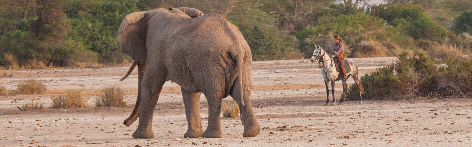 Wake up with the sun before riding out, headed towards the Kenyan border. This day will be spent tracking the footsteps of the elephant. Hopefully we have good luck tracking and get the chance to see these giants from the back of a horse. The night will be spent overlooking the pans with its plains game on constant alert for predators. Hopefully the night is clear, as apart from the view of the mountain landscape, the night sky is absolutely breathtaking.